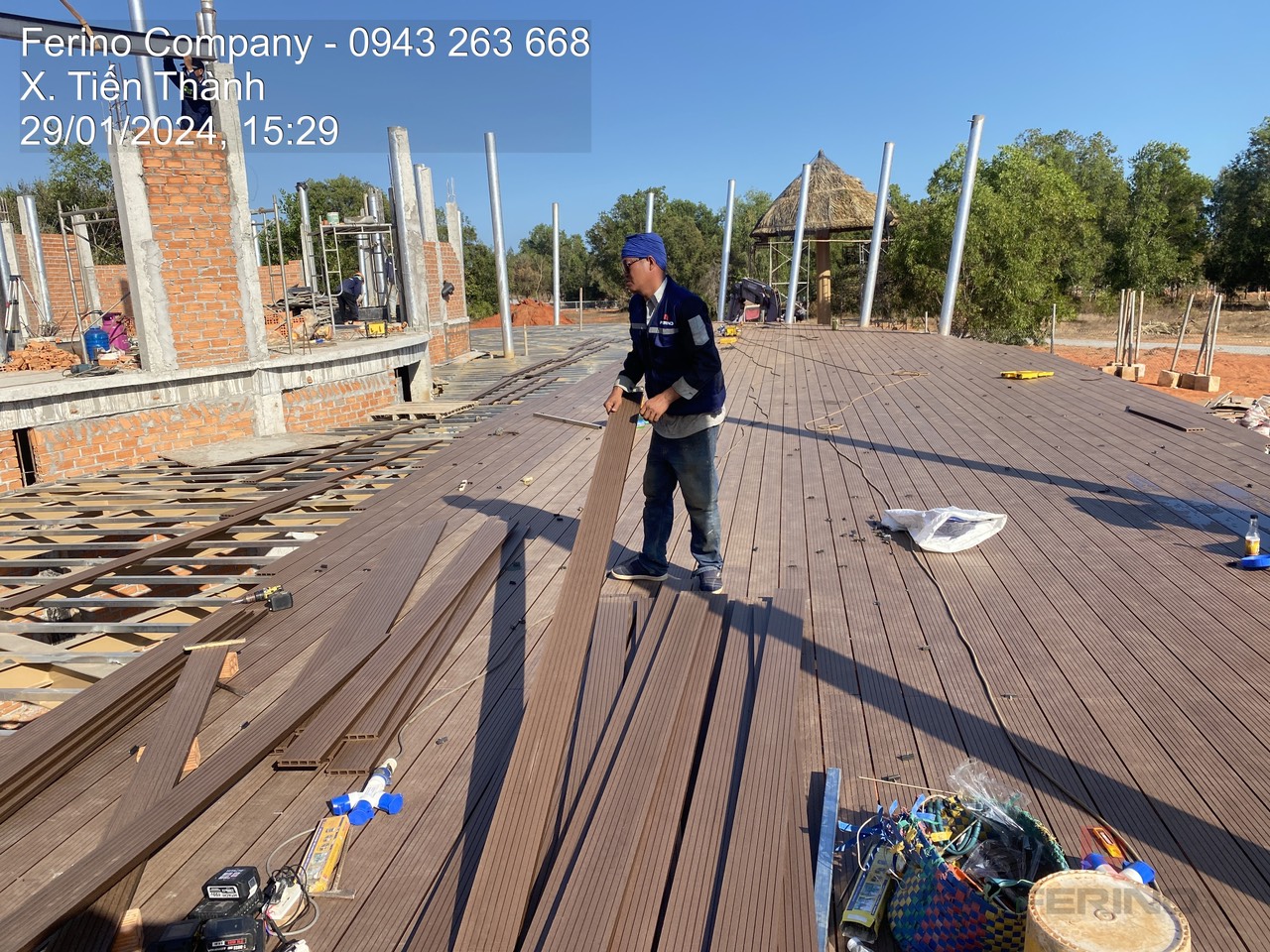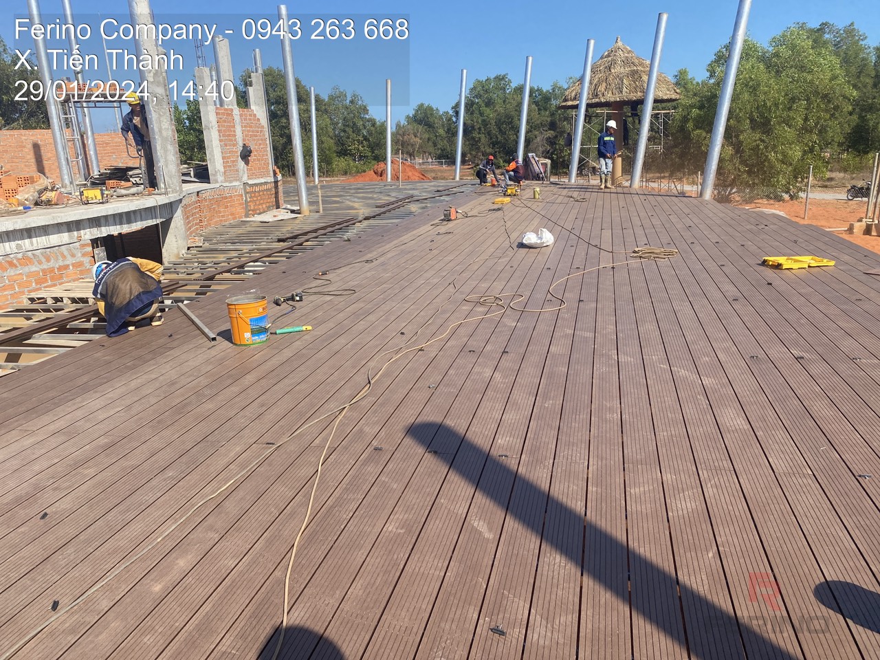 Ferino – Sàn Gỗ Nhựa Composite rất vui khi được được chủ đầu tư lựa chọn làm nhà thầu thi công hạng mục sàn Decking WPC nhựa giả gỗ cho toàn bộ diện tích 750m2 của công trình.