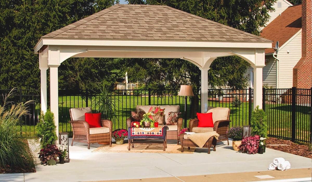 - Cảnh quan sân vườn: Tông màu, vật liệu và kiểu dáng của chòi nên hòa quyện với cây cối, lối đi, hồ nước hay tiểu cảnh xung quanh để tạo nên một bức tranh thống nhất.