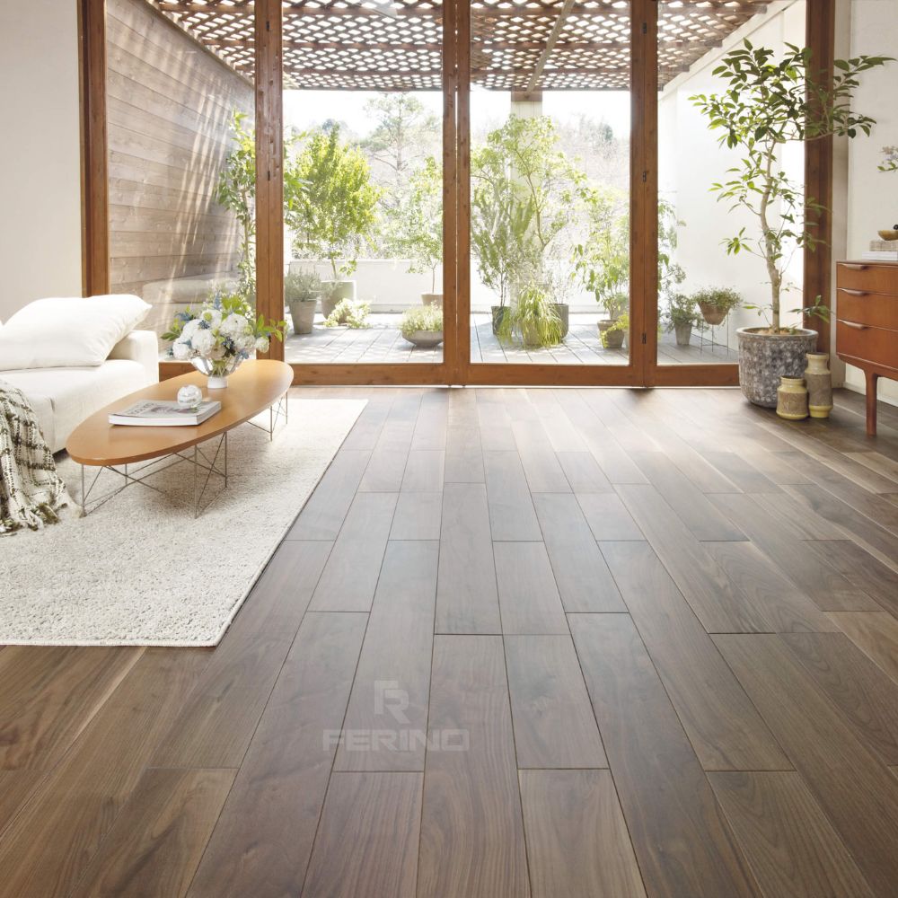 Sàn gỗ kỹ thuật Óc Chó của Ferino được sản xuất với cấu tạo gồm 2 lớp chính: lớp bề mặt từ gỗ Óc Chó tự nhiên (Walnut) và lớp đáy Polywood.