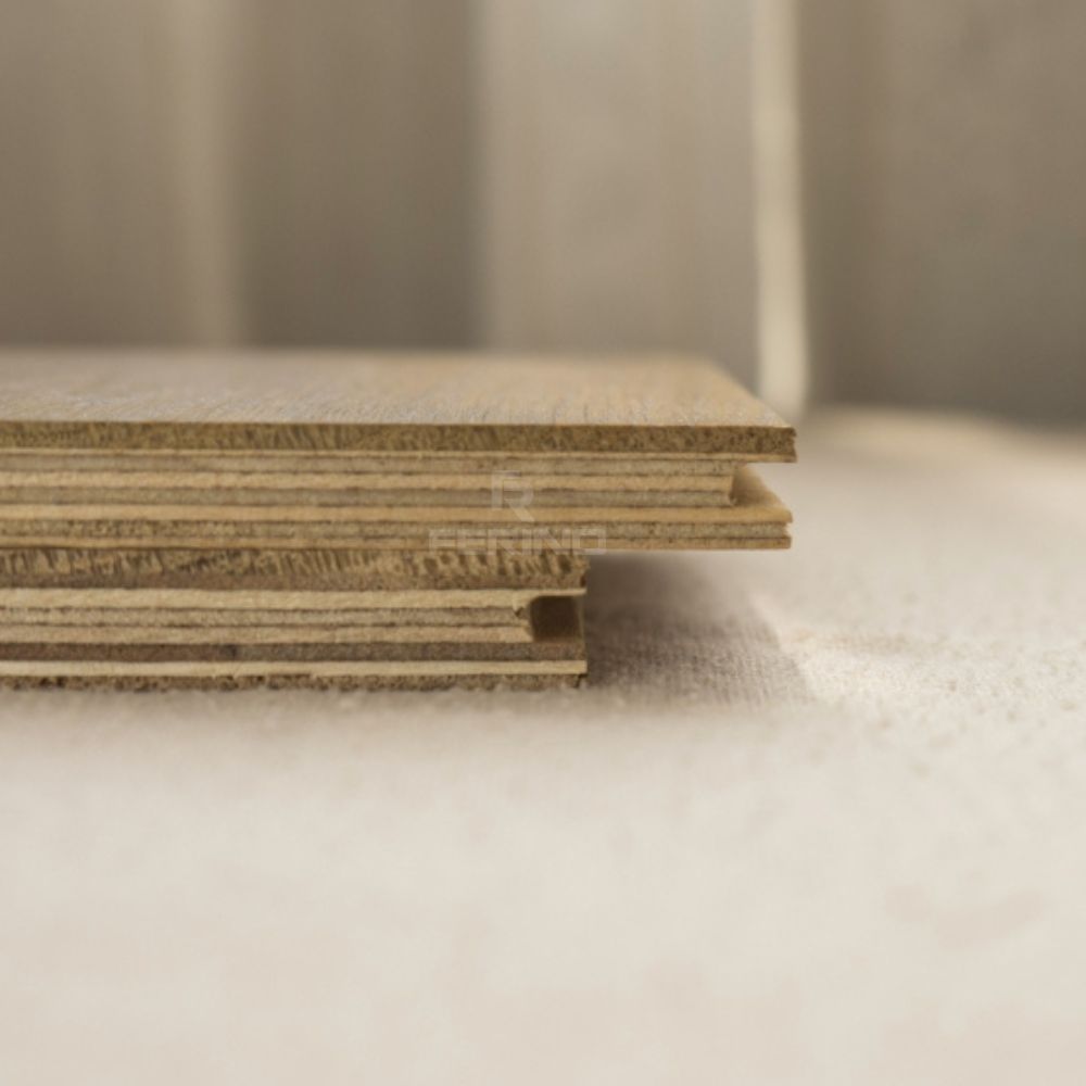 Sàn gỗ kỹ thuật Sồi của Ferino bao gồm 2 lớp chính: lớp bề mặt gỗ Sồi tự nhiên và lớp đáy Plywood.