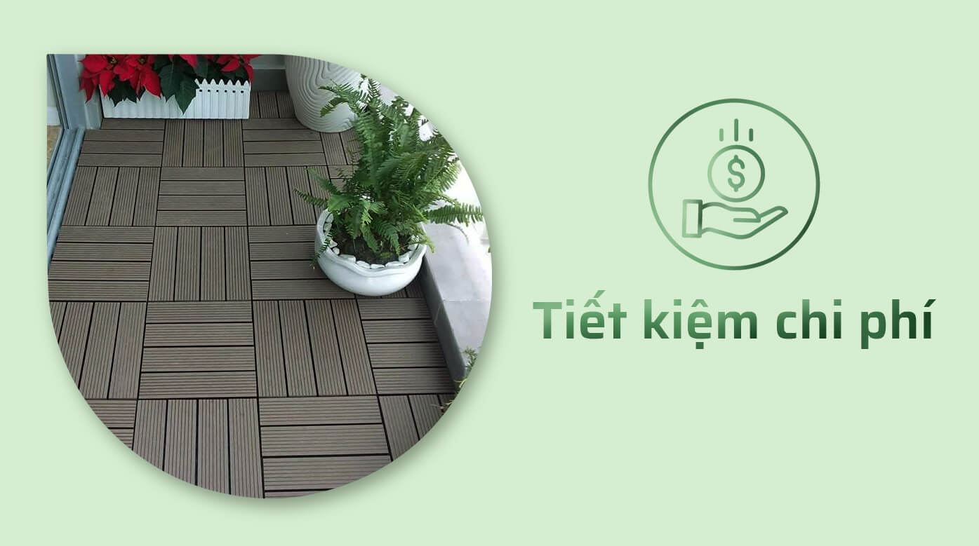 Lắp đặt tấm vỉ gỗ nhựa lót sàn giúp tiết kiệm chi phí hơn so với các loại gỗ tự nhiên bởi độ bền cao chi phí bảo trì bảo hành thấp không phát sinh thêm bất kỳ chi phí nào.