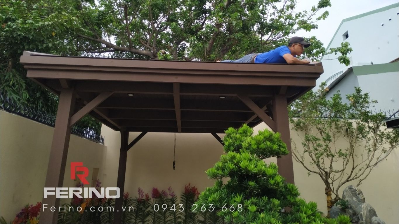 Công trình chòi nghỉ sân vườn được đội ngũ kỹ thuật Ferino triển khai tại biệt thự tại Gò Vấp TP HCM, ứng dụng vật liệu gỗ nhân tạo WPC.