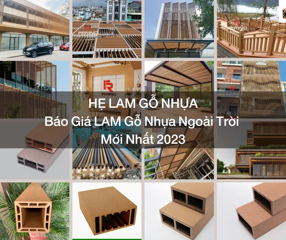 • Gỗ nhựa ngoài trời (cột gỗ nhựa 150x150mm, xà gồ 80x180mm, hệ lam 50x100mm)