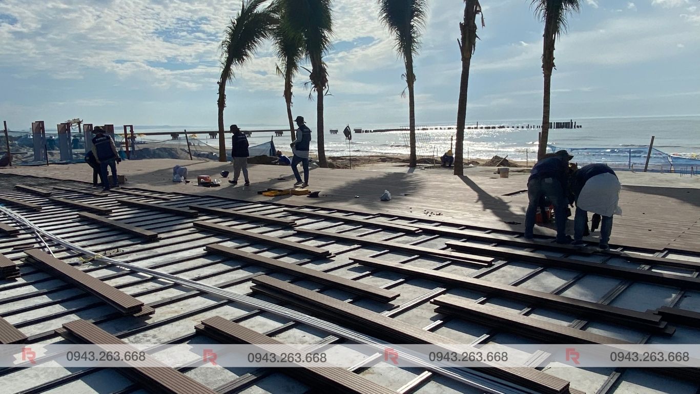 Thi Công Sàn Gỗ Nhựa Ngoài Trời Tại Nhà Hàng Hải Cảng SeaFood, Novaworld Phan Thiết