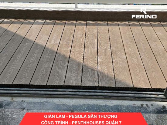 Ferino tự hào là đơn vị thi công chuyên nghiệp trong lĩnh vực gỗ nhựa, mang đến những công trình hoàn mỹ, bền vững và đẳng cấp. Mới đây, chúng tôi đã hoàn thành dự án thi công sàn gỗ nhựa ngoài trời, vách lam sóng và giàn lam pegola tại penthouse tầng 26, Quận 7. Công trình được thi công trong 5 ngày với độ chính xác cao, đảm bảo tính thẩm mỹ và độ bền vượt trội.